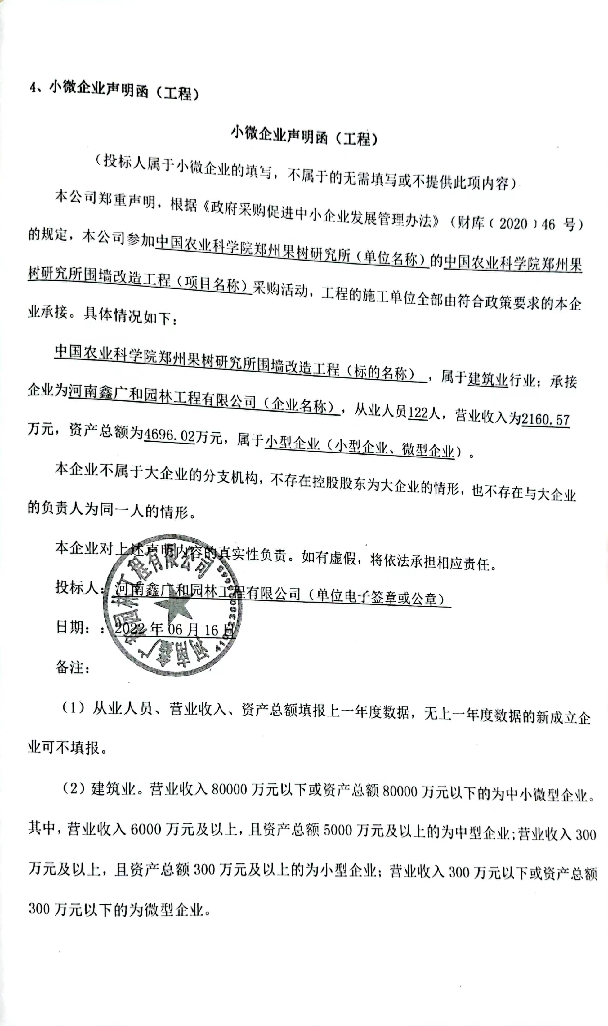 公示內(nèi)容 | 河南豫信招標(biāo)有限責(zé)任公司受中國農(nóng)業(yè)科學(xué)院鄭州果樹研究所的委托,就中國農(nóng)業(yè)科學(xué)院鄭州果樹研究所圍墻改造工程進(jìn)行了公開招標(biāo),按規(guī)定程序進(jìn)行了開標(biāo)、評標(biāo)、定標(biāo),現(xiàn)就本次招標(biāo)的中標(biāo)結(jié)果公布如下: 中標(biāo)人:河南鑫廣和園林工程有限公司 中標(biāo)人地址:湯陰縣菜園鎮(zhèn)南馬路(S302省道南側(cè)) 中標(biāo)價:2040150.75元