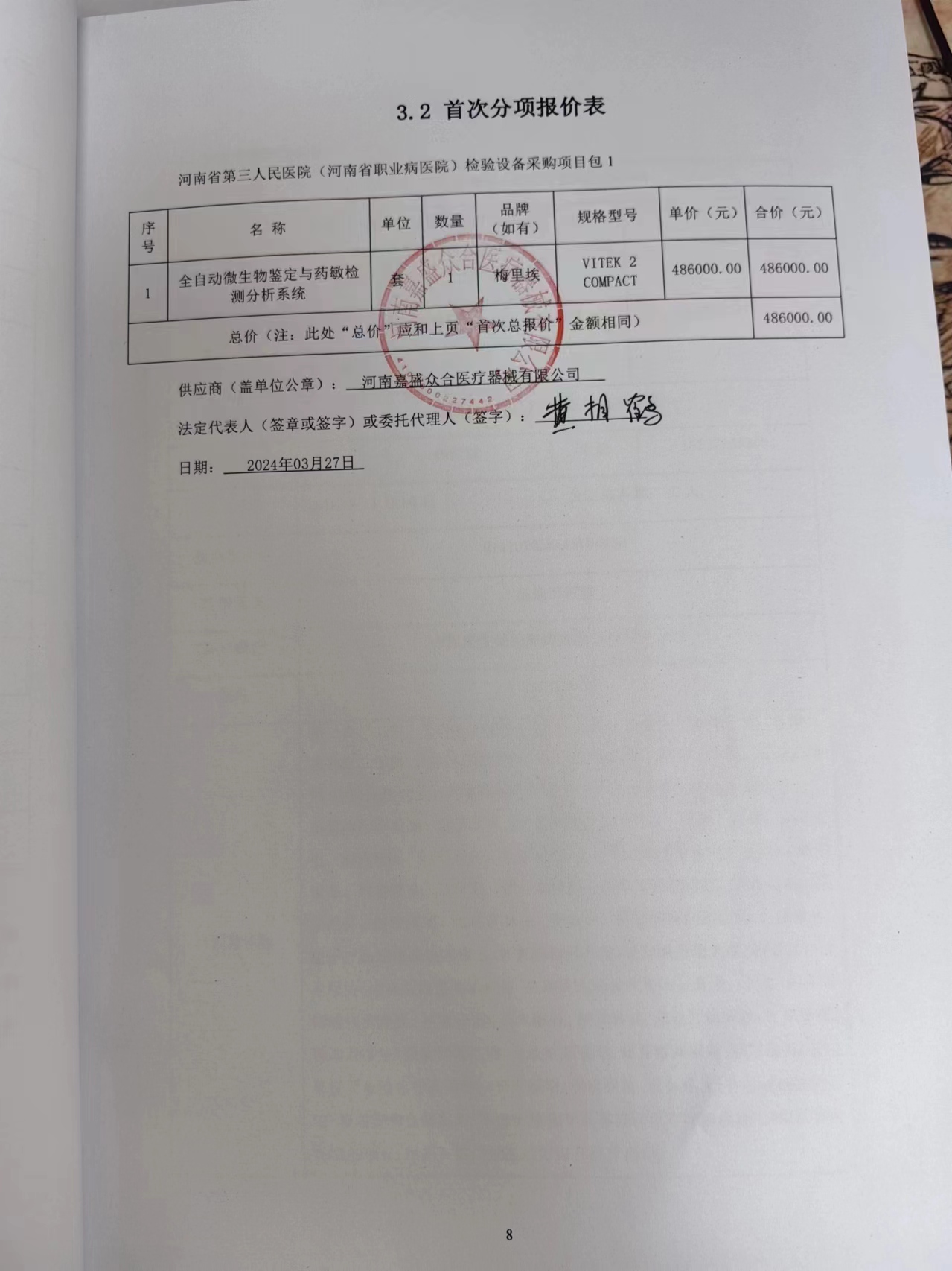 河南省第三人民醫(yī)院(河南省職業(yè)病醫(yī)院)檢驗(yàn)設(shè)備采購(gòu)項(xiàng)目包1 | 河南嘉盛眾合醫(yī)療器械有限公司 | 河南省新鄉(xiāng)市紅旗區(qū)金穗大道與新二街交叉口東北角迎賓大廈(靖業(yè)跨境貿(mào)易大廈)第31層14號(hào) | 478000.00 | 金額 | 元 | ||||