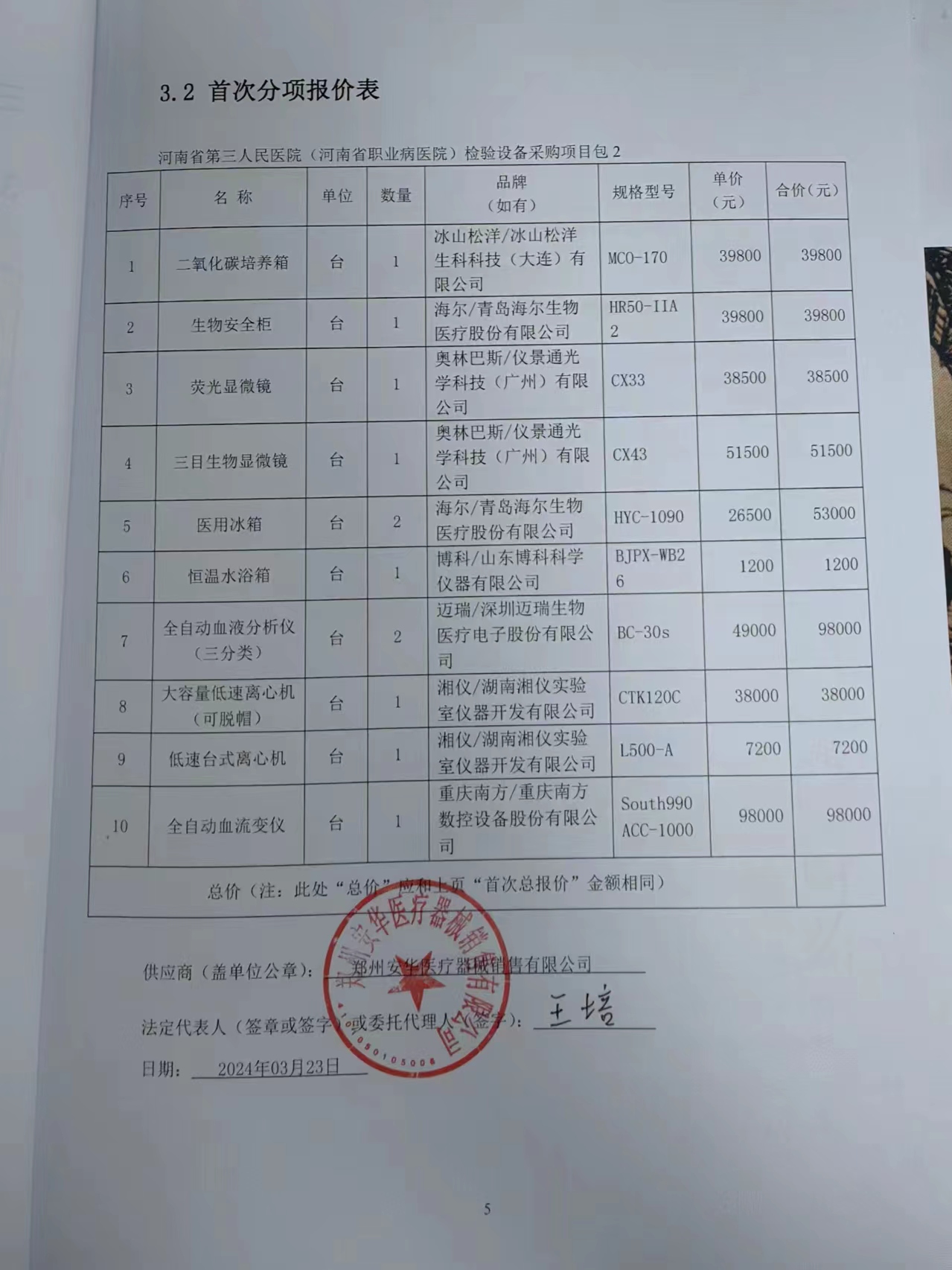 河南省第三人民醫(yī)院(河南省職業(yè)病醫(yī)院)檢驗(yàn)設(shè)備采購(gòu)項(xiàng)目包2 | 鄭州安華醫(yī)療器械銷售有限公司 | 河南省鄭州市航空港經(jīng)濟(jì)綜合實(shí)驗(yàn)區(qū)古城三路37號(hào)美創(chuàng)國(guó)際科技產(chǎn)業(yè)園B5-1-02號(hào)2層-3層 | 418000.00 | 金額 | 元 | ||||