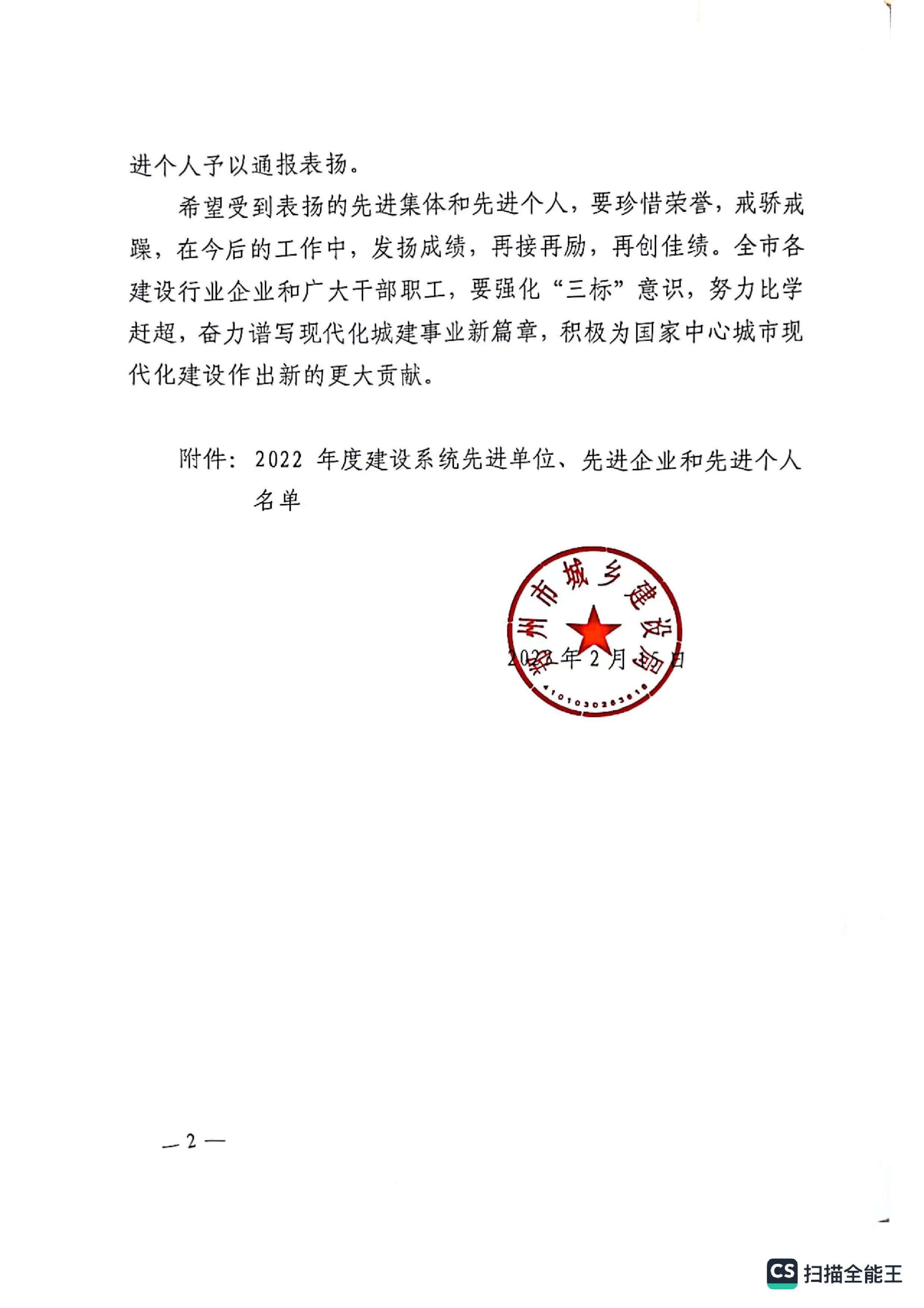 熱烈祝賀我公司獲得鄭州市城鄉(xiāng)建設(shè)局評定“2022年度建設(shè)系統(tǒng)先進單位“企業(yè)稱號。