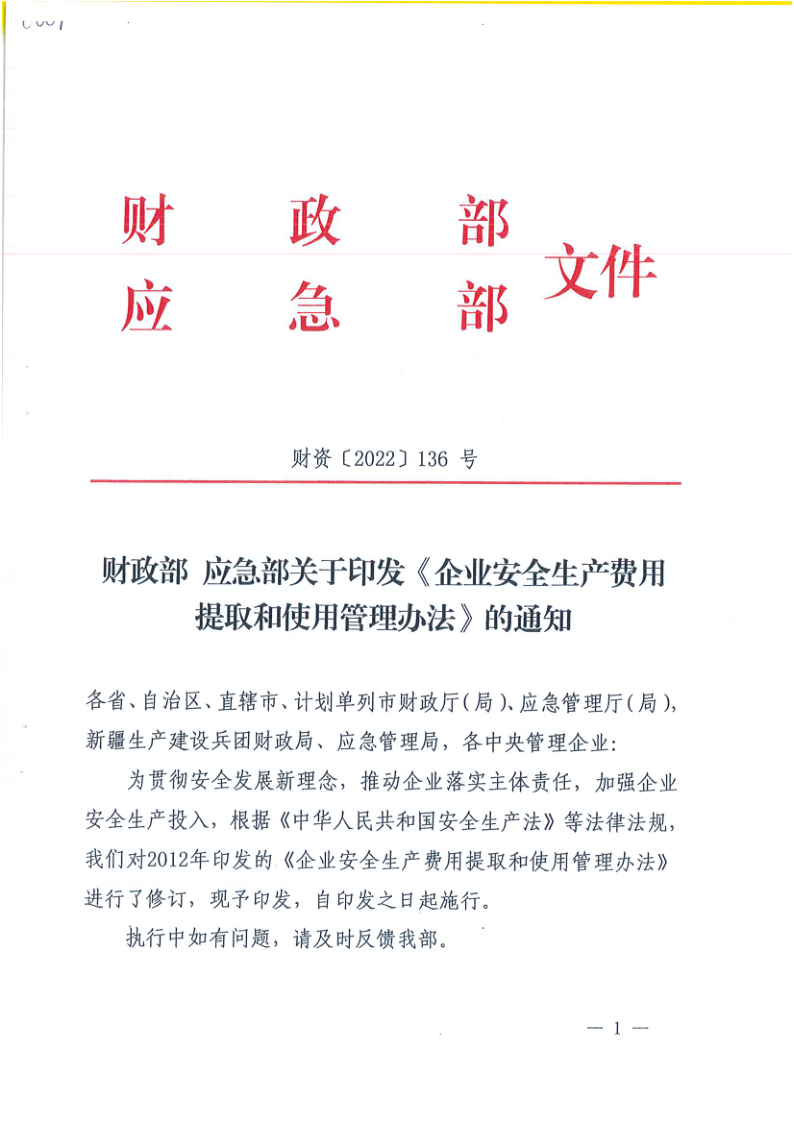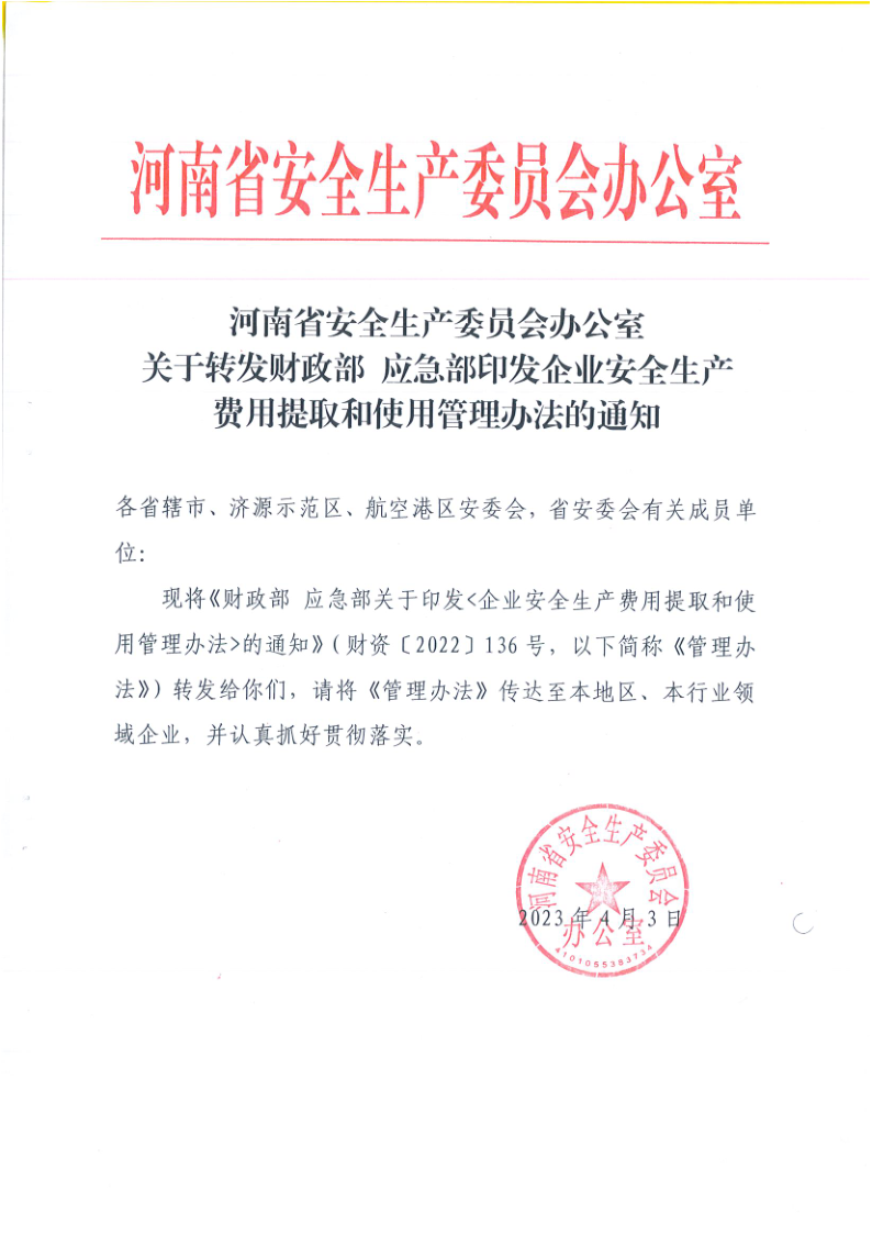 關(guān)于轉(zhuǎn)發(fā)財政部應(yīng)急部印發(fā)企業(yè)安全生產(chǎn)費用提取和使用管理辦法的通知