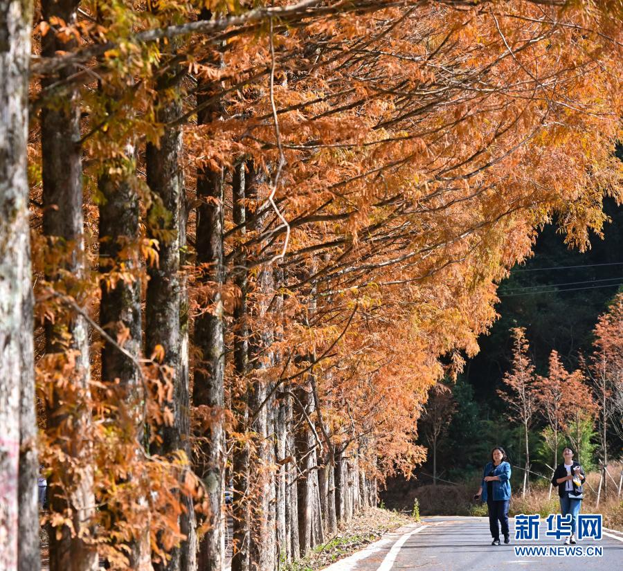 游客在福建省三明市將樂縣龍棲山國家級自然保護區(qū)水杉大道游覽(11月20日攝)。新華社記者 宋為偉 攝