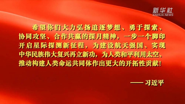 ?? 習(xí)近平總書記曾用“追逐夢(mèng)想、勇于探索、協(xié)同攻堅(jiān)、合作共贏”這16個(gè)字高度概括總結(jié)了“探月精神”,勉勵(lì)航天工作者們一步一個(gè)腳印開啟星際探測(cè)新征程,為建設(shè)航天強(qiáng)國、實(shí)現(xiàn)中華民族偉大復(fù)興再立新功。