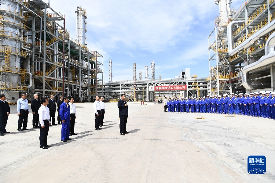 9月13日至14日,中共中央總書記、國家主席、中央軍委主席習近平在陜西省榆林市考察。這是13日上午,習近平在國家能源集團榆林化工有限公司年產40萬噸乙二醇項目現場考察。新華社記者 李學仁 攝