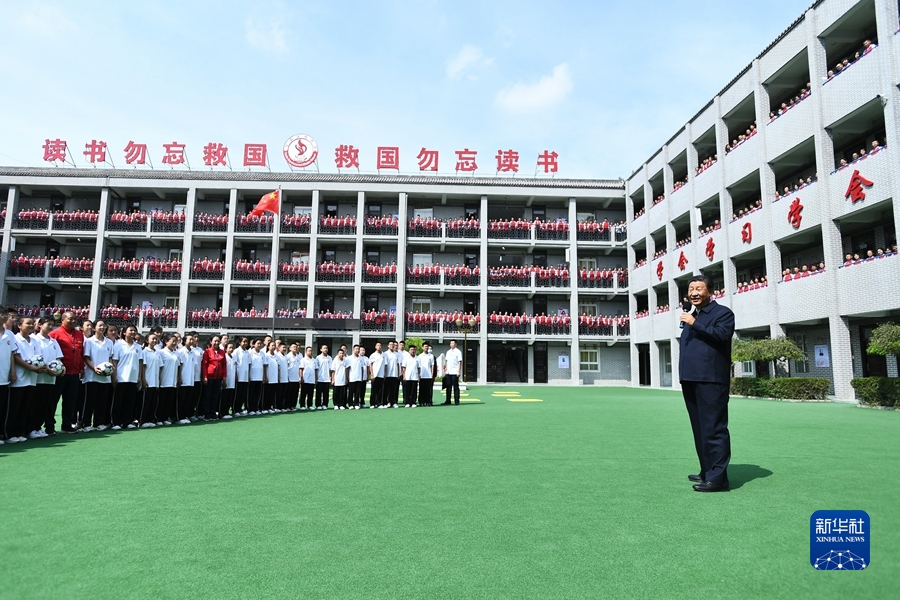 隨后,習近平來到綏德實驗中學,先后走進教室、操場,觀看同學們書法練習和體育鍛煉,同大家親切交流。他指出,中華文明源遠流長、綿延不斷,基礎在教育。實現中華民族偉大復興,基礎在教育。我們辦教育,就是要提高人民綜合素質,促進人的全面發(fā)展,提升社會文明程度,堅定文化自信,增強全民族創(chuàng)造活力。要全面貫徹黨的教育方針,落實立德樹人根本任務,厚植愛黨、愛國、愛人民、愛社會主義的情感,努力培養(yǎng)德智體美勞全面發(fā)展的社會主義建設者和接班人。要深化教育教學改革,強化學校教育主陣地作用,全面提高學校教學質量,真正把過重的學業(yè)負擔和校外培訓負擔減下來,辦好人民滿意的教育。最后,習近平勉勵同學們珍惜大好年華,修身立德、勤學上進、強健體魄、錘煉意志,做對國家、對人民、對社會有用的人。