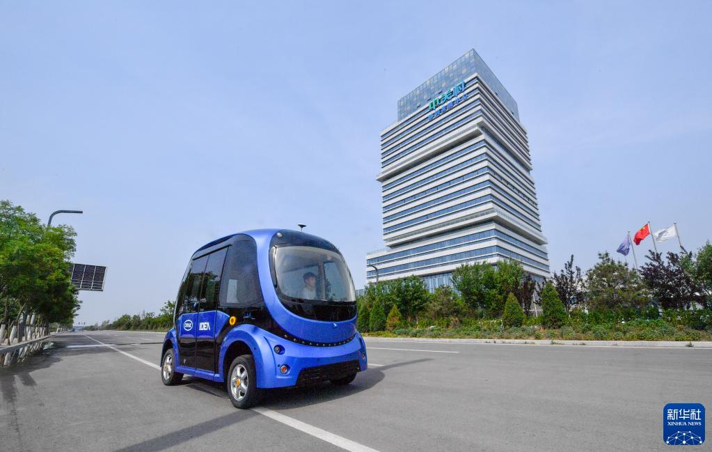 一輛無(wú)人駕駛汽車在京津中關(guān)村科技城內(nèi)部道路進(jìn)行道路測(cè)試(5月19日攝)。新華社記者 孫凡越 攝