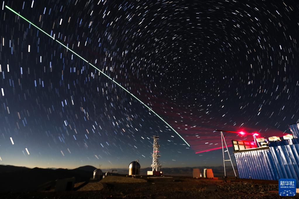 2016年12月9日,“墨子號(hào)”量子科學(xué)實(shí)驗(yàn)衛(wèi)星與阿里量子隱形傳態(tài)實(shí)驗(yàn)平臺(tái)建立天地鏈路(合成照片)。新華社記者 金立旺 攝