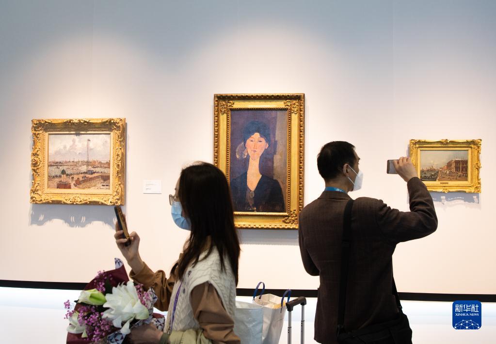 11月7日,觀眾在第四屆進(jìn)博會(huì)服務(wù)貿(mào)易展區(qū)佳士得展位參觀拍攝。第四屆進(jìn)博會(huì)在服務(wù)貿(mào)易展區(qū)首設(shè)文物藝術(shù)品專區(qū)。新華社記者 鄔惠我 攝
