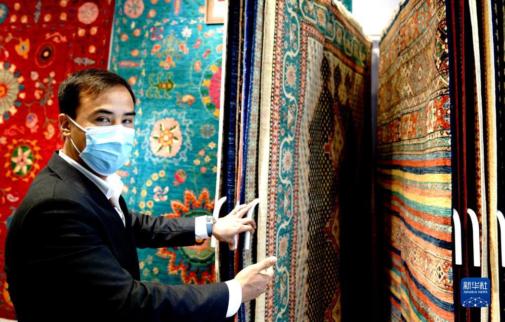 20多平方米的小展臺(tái),沒有復(fù)雜的數(shù)字光影技術(shù),只有一臺(tái)筆記本電腦循環(huán)播放產(chǎn)品介紹。來自阿富汗的地毯商阿里說,只要賣出一張大幅的手工羊毛地毯,就能保障這個(gè)飽經(jīng)戰(zhàn)亂的國家一個(gè)普通家庭近一年的生活。
