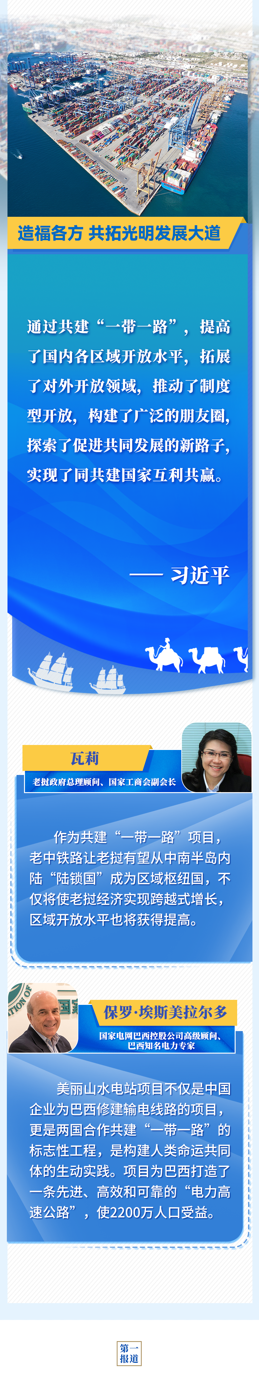 中共中央總書記、國家主席、中央軍委主席習(xí)近平19日在北京出席第三次“一帶一路”建設(shè)座談會并發(fā)表重要講話。多國人士和我海外項目人員表示,“一帶一路”倡議提出8年來取得實實在在成果,習(xí)近平主席的重要講話為繼續(xù)推動共建“一帶一路”高質(zhì)量發(fā)展擘畫藍圖、指明方向,期待共建“一帶一路”不斷取得新成效,更好造福各國人民。