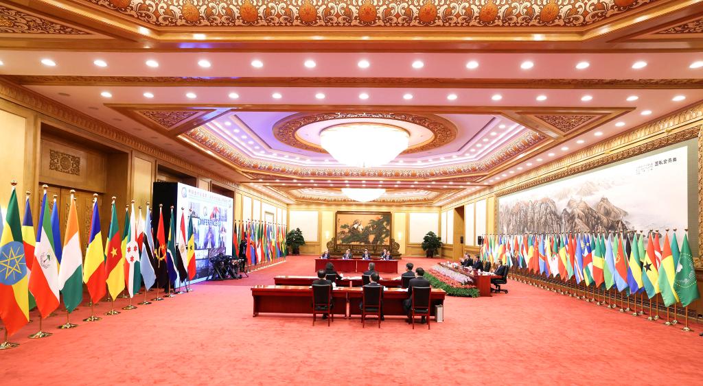 “志合者,不以山海為遠(yuǎn)”。29日晚,北京人民大會堂東大廳內(nèi),中國和53個非洲國家國旗以及非洲聯(lián)盟旗幟并排矗立、恢弘大氣,雖是“云端”相聚,但現(xiàn)場洋溢著濃濃情誼,昭示著中非歷久彌堅的友好關(guān)系。