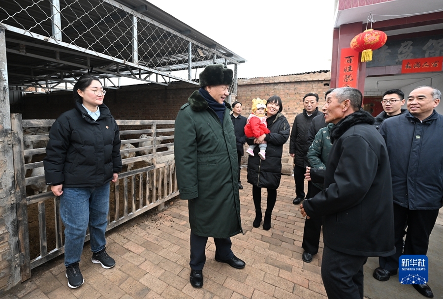 1月26日至27日,中共中央總書記、國家主席、中央軍委主席習(xí)近平來到山西,看望慰問基層干部群眾。這是26日下午,習(xí)近平在臨汾市汾西縣僧念鎮(zhèn)段村蔡文明家察看羊圈。新華社記者 李學(xué)仁 攝