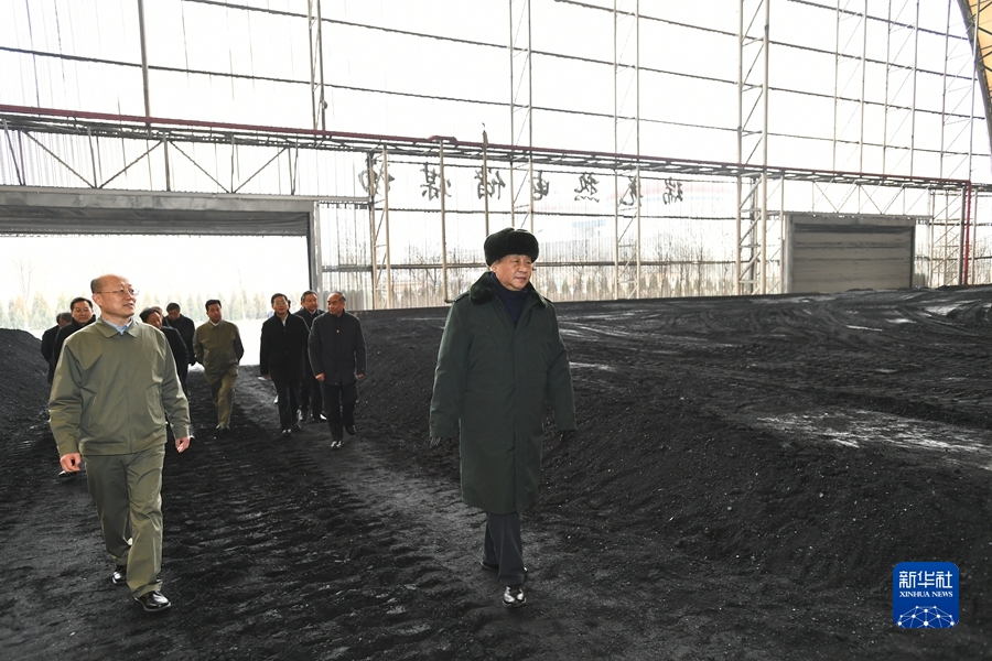 1月26日至27日,中共中央總書記、國家主席、中央軍委主席習(xí)近平來到山西,看望慰問基層干部群眾。這是27日下午,習(xí)近平在山西瑞光熱電有限責(zé)任公司儲(chǔ)煤場察看煤場儲(chǔ)煤情況。新華社記者 謝環(huán)馳 攝