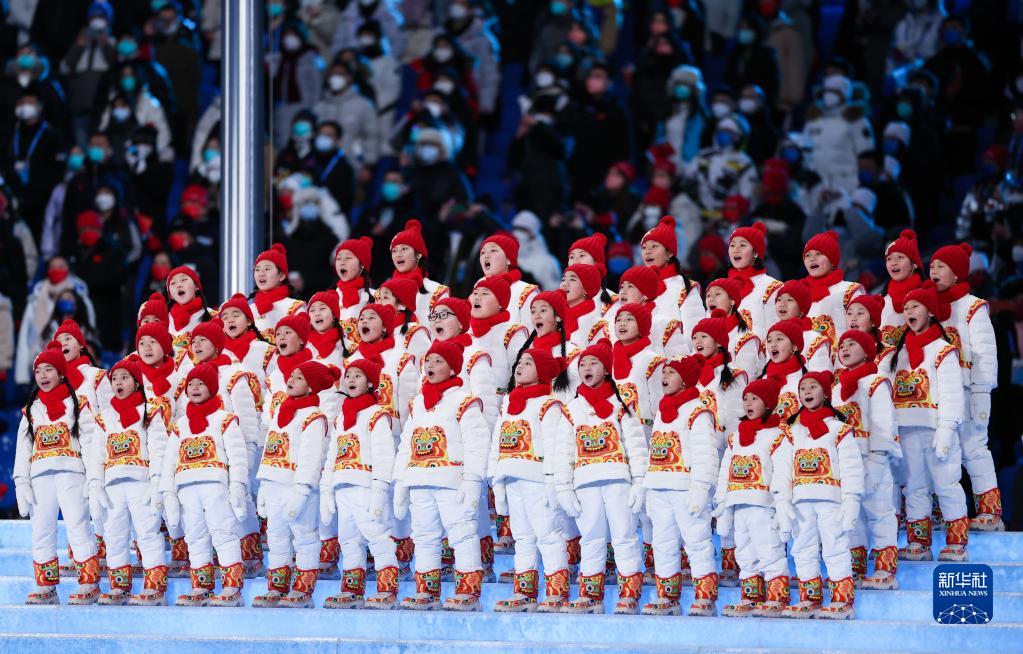 2月4日晚,第二十四屆冬季奧林匹克運(yùn)動(dòng)會(huì)開幕式在北京國(guó)家體育場(chǎng)舉行。這是“馬蘭花兒童合唱團(tuán)”用希臘語(yǔ)在開幕式上歌唱。新華社記者 曹燦 攝