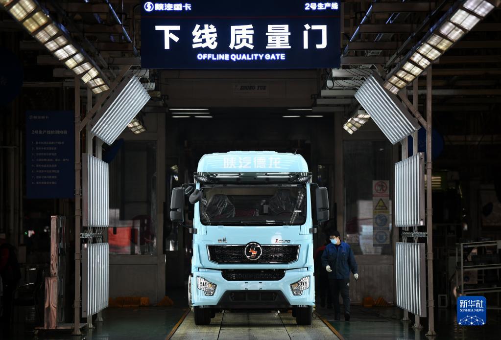 1月20日,工作人員在陜西汽車控股集團(tuán)有限公司總裝車間驗(yàn)收一輛裝配完畢的重型卡車。新華社記者 李一博 攝