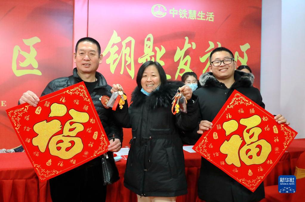 1月17日,即將入住雄安新區(qū)容東片區(qū)E組團(tuán)安置房的居民展示鑰匙。新華社發(fā)