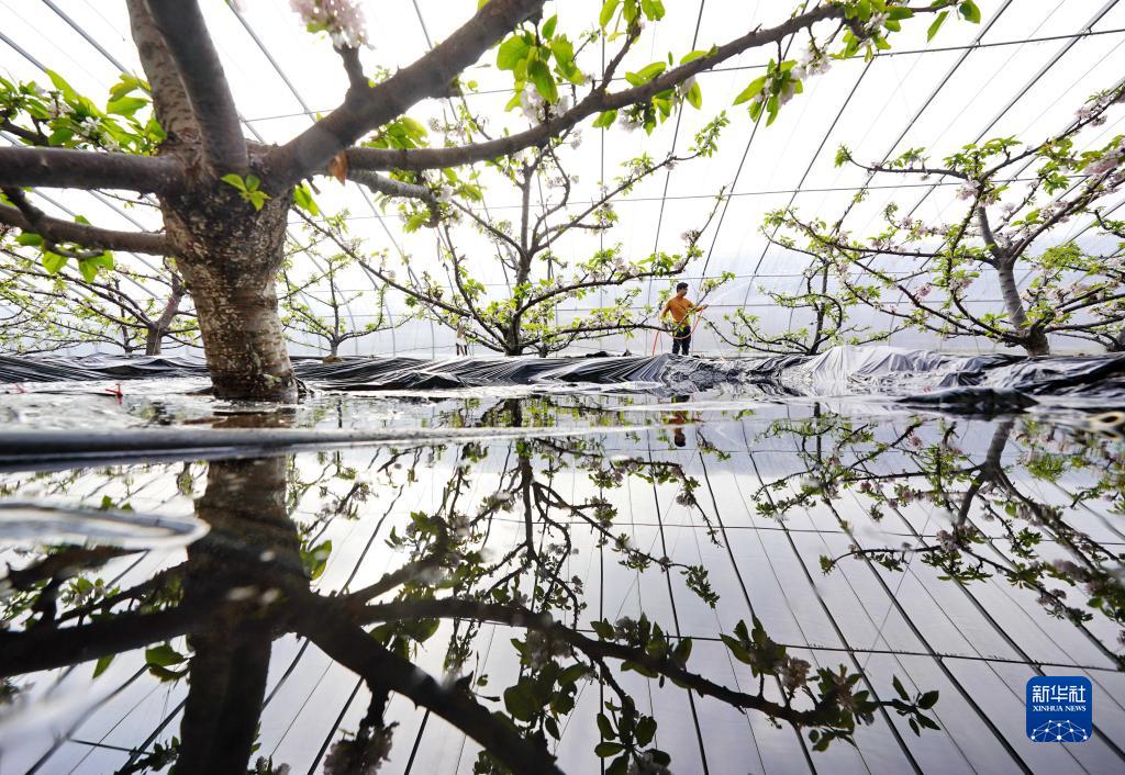 1月11日,河北省灤州市茨榆坨鎮(zhèn)建民種植專業(yè)合作社的一名社員在大棚內(nèi)澆水。新華社記者 楊世堯 攝