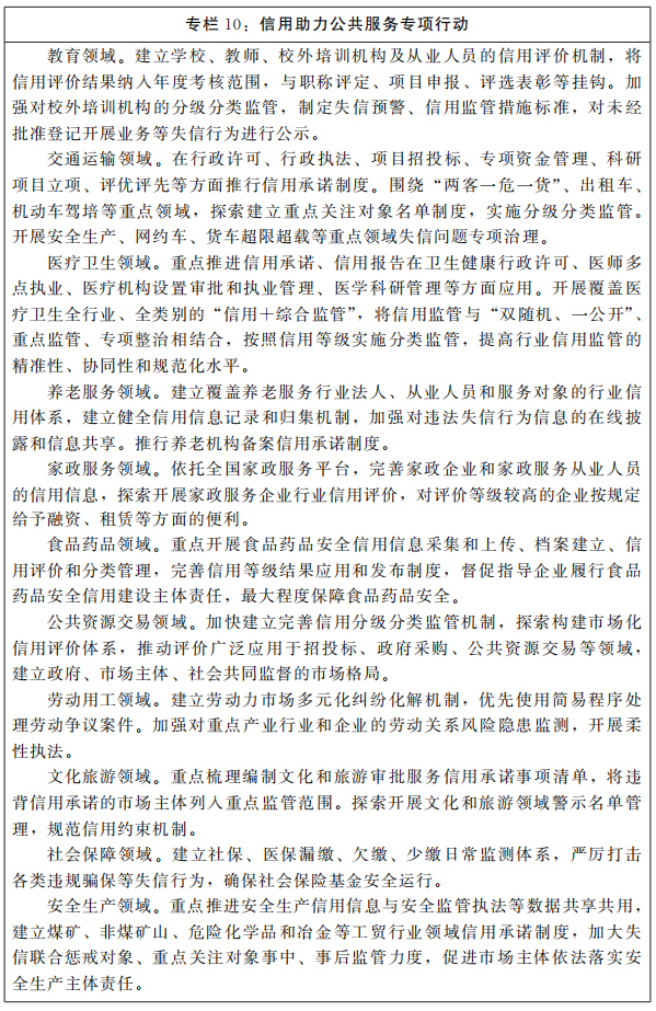 發(fā)揮信用在創(chuàng)新監(jiān)管機(jī)制、提高監(jiān)管能力方面的基礎(chǔ)性作用,建立健全貫穿市場主體全生命周期,銜接事前、事中、事后全過程的新型監(jiān)管機(jī)制,完善以信用承諾為重點的事前互信機(jī)制,加強以信用分級分類為手段的事中精準(zhǔn)監(jiān)管,推進(jìn)以信用獎懲為核心的事后閉環(huán)監(jiān)管,推行以權(quán)益保護(hù)為重點的信用修復(fù)機(jī)制,強化重點領(lǐng)域信用監(jiān)管,全面構(gòu)建以信用為基礎(chǔ)的新型監(jiān)管機(jī)制。