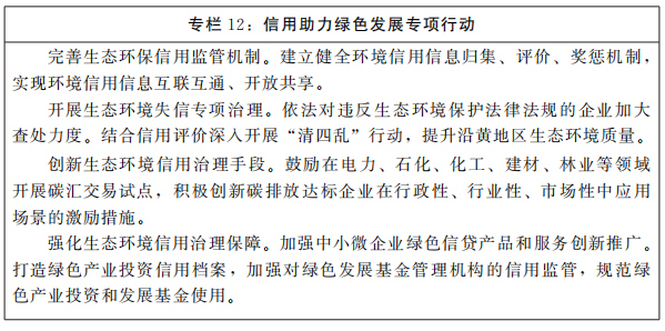 加強生態(tài)環(huán)境領(lǐng)域信用建設(shè),開展生態(tài)環(huán)境失信專項治理,創(chuàng)新生態(tài)環(huán)境失信治理措施。強化沿黃生態(tài)、淮河生態(tài)、大別山等生態(tài)環(huán)境圈信用治理保障,結(jié)合公共信用評價和行業(yè)信用評價,制定沿黃、淮河、大別山等地區(qū)產(chǎn)業(yè)準(zhǔn)入負(fù)面清單,推動高耗水、高污染、高耗能產(chǎn)業(yè)布局優(yōu)化和結(jié)構(gòu)調(diào)整。