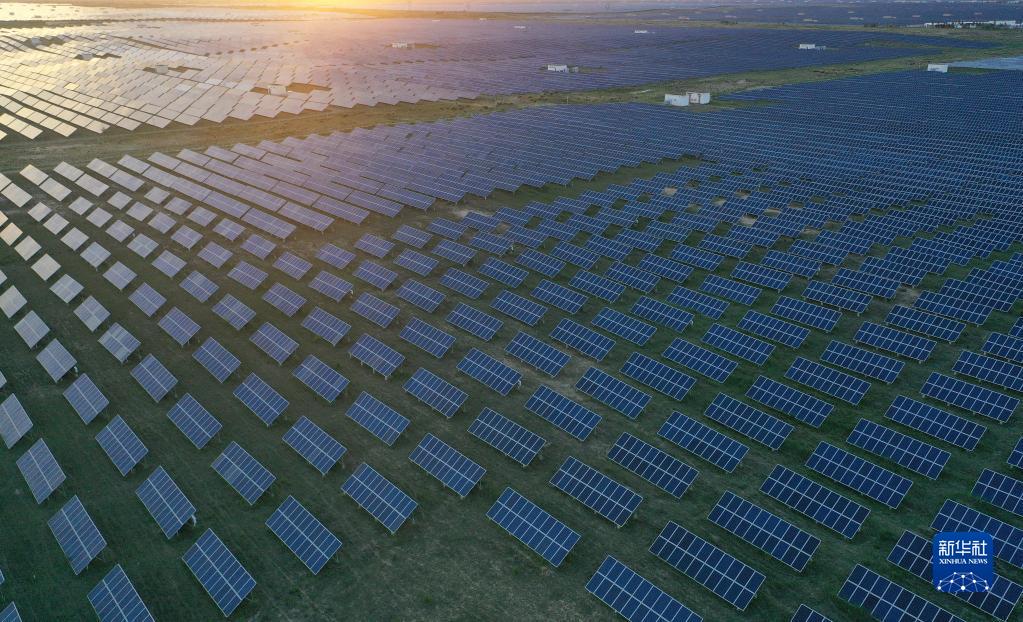 這是青海省海南藏族自治州共和縣境內(nèi)的大唐青海公司新能源分公司光伏電站一角(2020年7月7日攝,無人機(jī)照片)。新華社記者 張宏祥 攝
