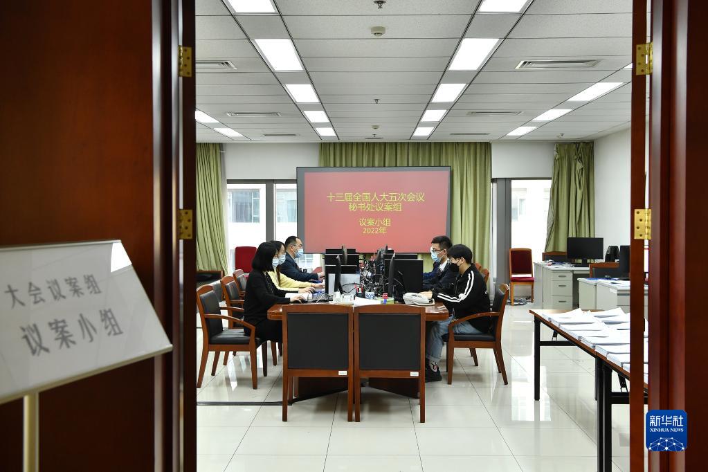 3月9日,十三屆全國人大五次會(huì)議秘書處議案組議案小組在工作中。新華社記者 李鑫 攝