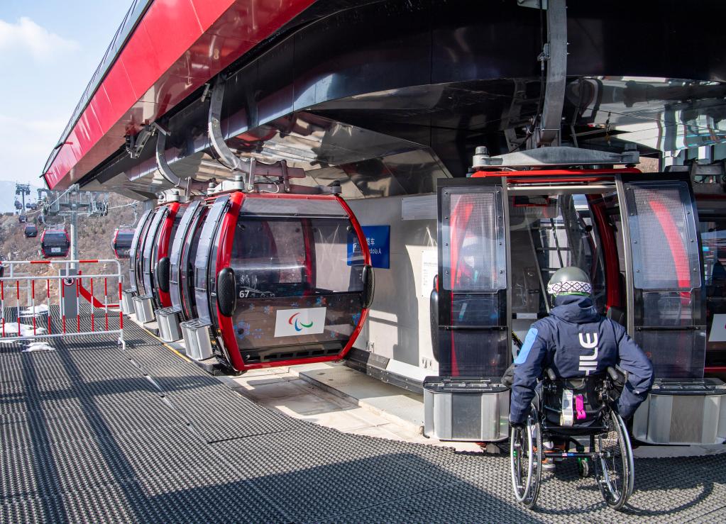 國家游泳中心看臺無障礙座席及衛(wèi)生間均比原來增加一倍;國家高山滑雪中心轎廂式纜車可供輪椅使用……