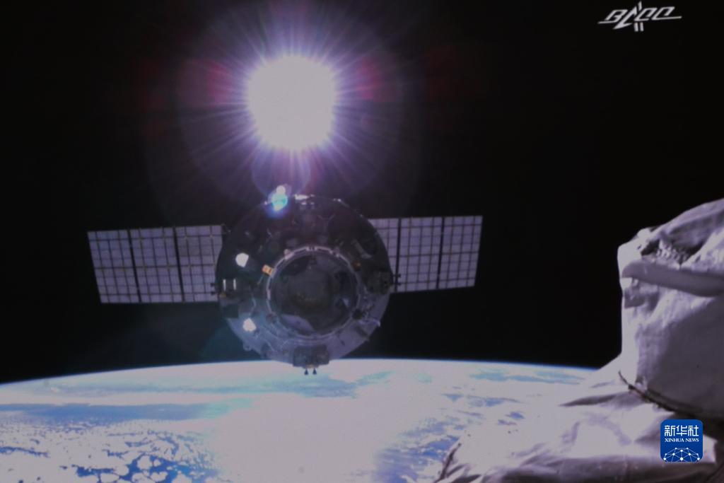 3月27日在北京航天飛行控制中心拍攝的天舟二號貨運飛船撤離空間站核心艙組合體圖像。這是天和核心艙外景相機實時圖像。新華社記者 郭中正 攝