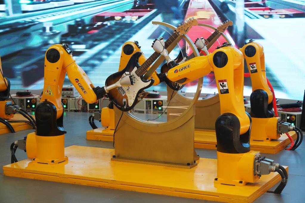 在位于贛州市的格力小鎮(zhèn),機器人樂隊正在演奏音樂(2月18日攝)。新華社記者萬象攝