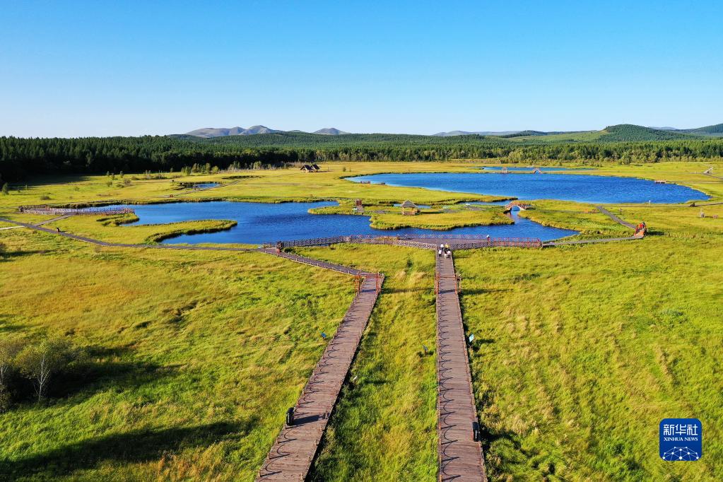 這是河北塞罕壩機械林場七星湖景區(qū)(2021年8月22日攝,無人機照片)。新華社記者 牟宇 攝