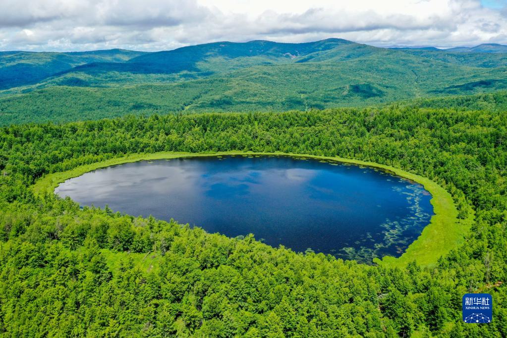 這是內蒙古阿爾山國家森林公園內的天池(2021年7月14日攝,無人機照片)。新華社記者 連振 攝