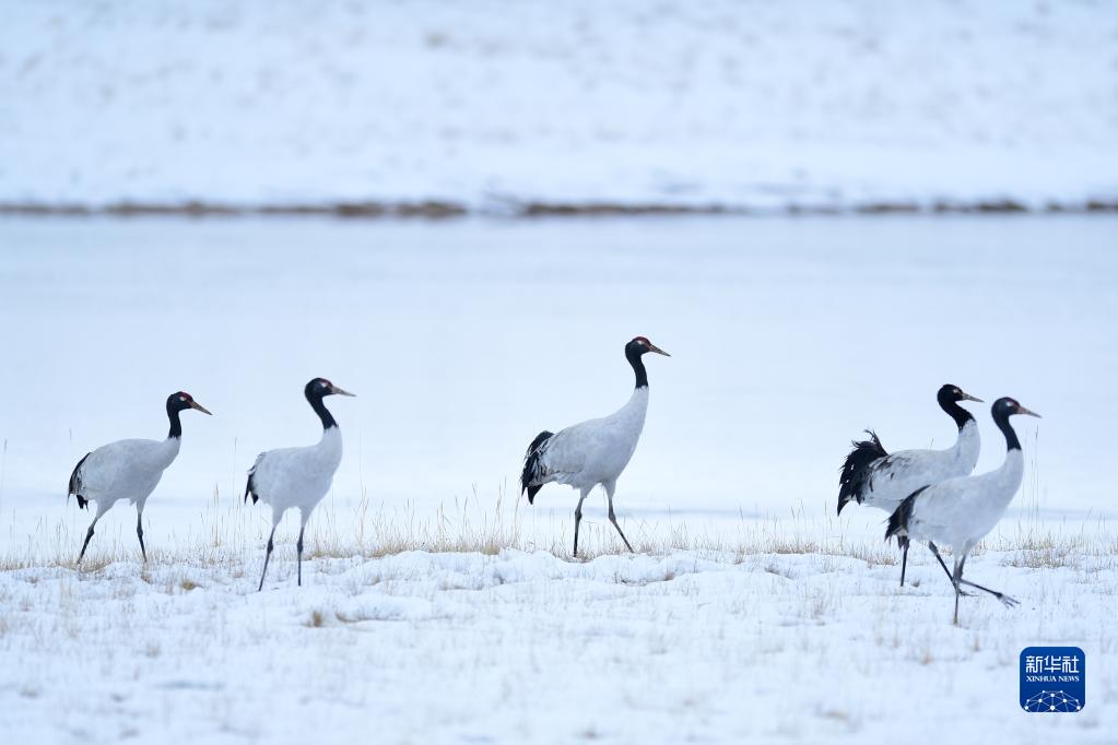 2021年10月21日在三江源國家公園黃河源園區(qū)內拍攝的黑頸鶴。新華社記者 張龍 攝