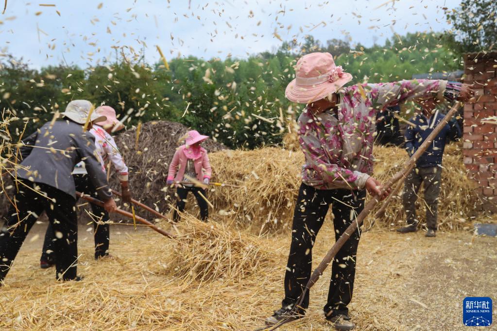 甘肅省定西市渭源縣元古堆村村民在脫麥子(2020年8月22日攝)。新華社記者 馬希平 攝