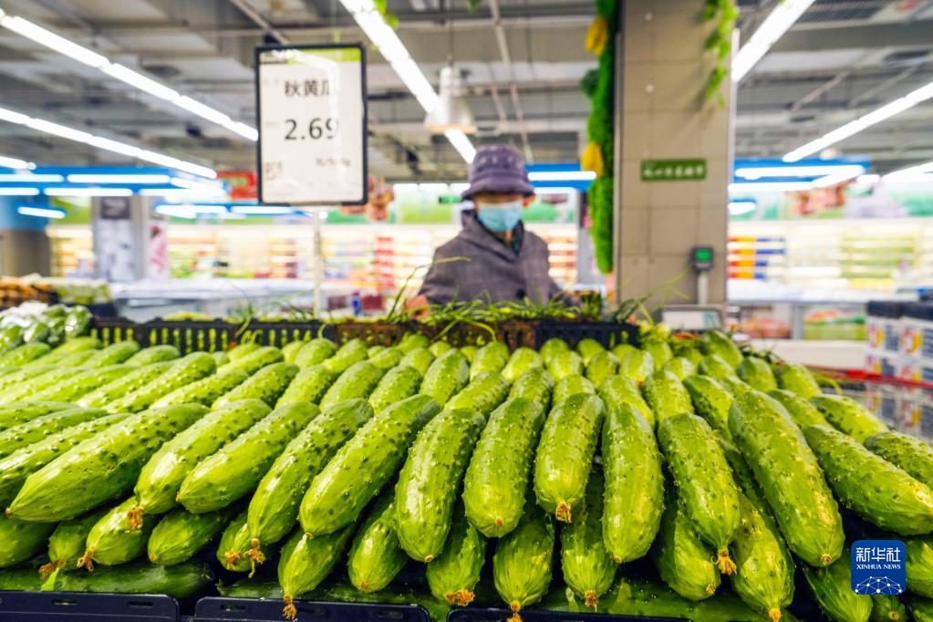 消費(fèi)者在河北唐山遵化市一家超市選購(gòu)蔬菜(4月11日攝)。新華社發(fā)(劉滿倉(cāng)攝)