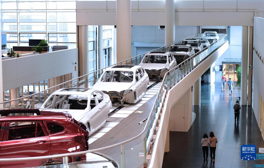 在華晨寶馬沈陽(yáng)鐵西工廠,生產(chǎn)中的車輛穿過(guò)辦公區(qū)(2月16日攝)。新華社記者 楊青 攝