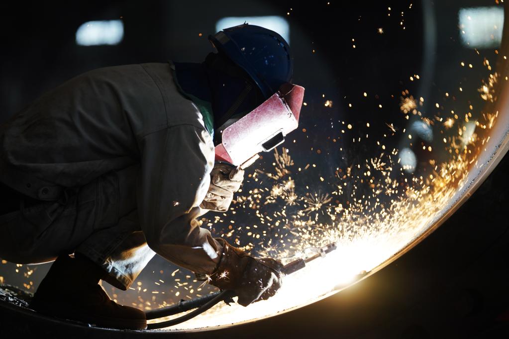 4月14日,在哈電集團哈爾濱鍋爐廠有限責任公司車間,工人在進行生產作業(yè)。新華社記者王建威 攝