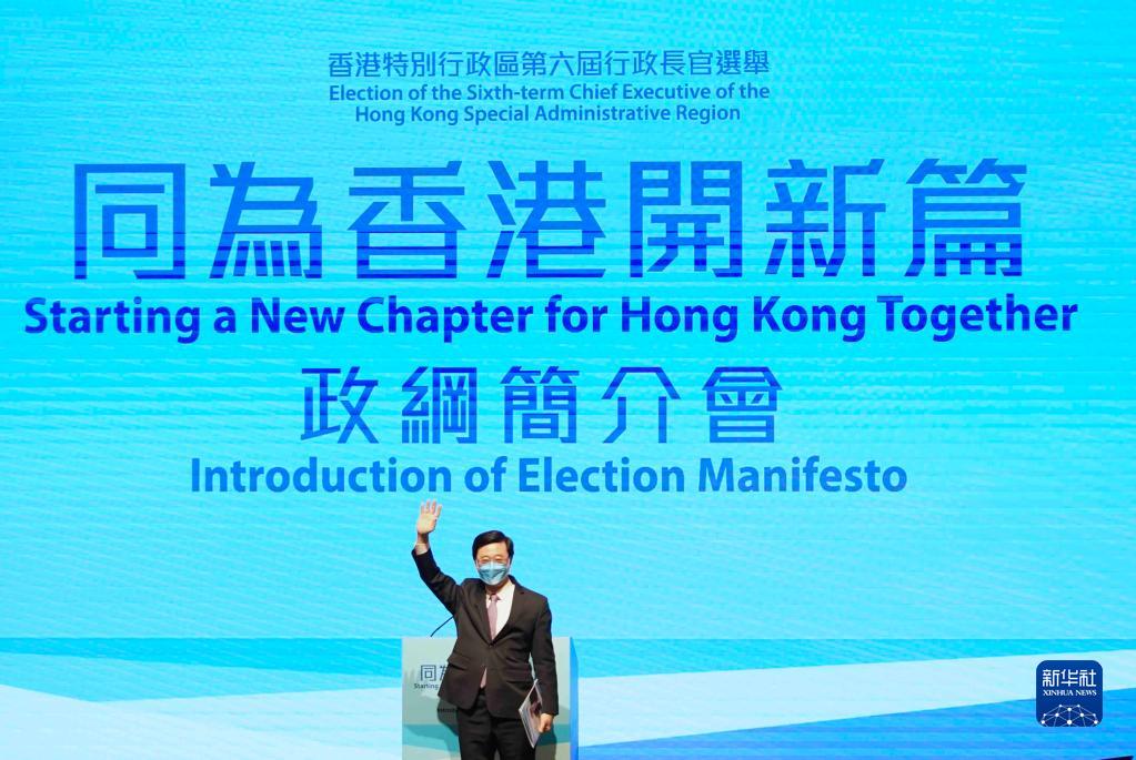 香港特區(qū)第六屆行政長(zhǎng)官選舉候選人李家超舉行政綱簡(jiǎn)介會(huì)(4月29日攝)。新華社記者 呂小煒 攝