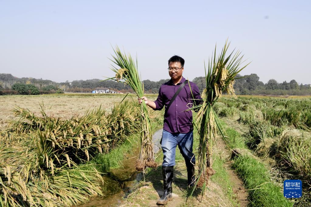湖南雜交水稻研究中心栽培室主任李建武在試驗(yàn)田工作(資料照片)。新華社發(fā)(受訪者供圖)