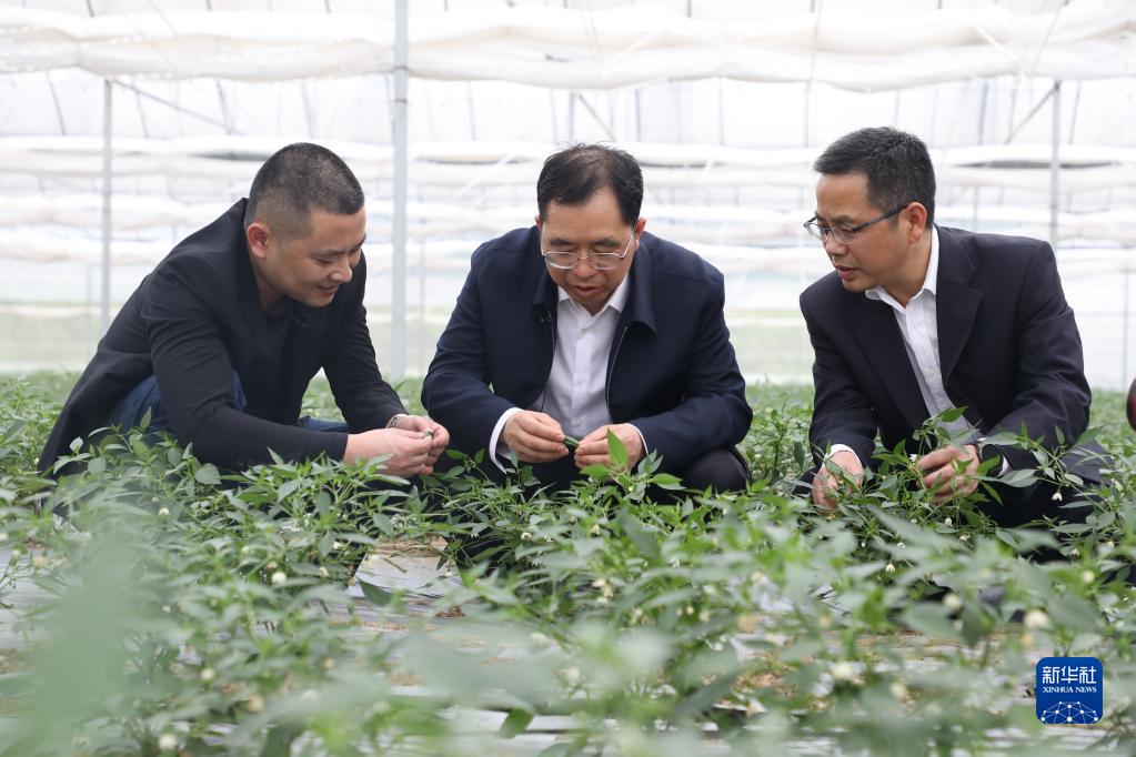 中國(guó)工程院院士、湖南農(nóng)業(yè)大學(xué)校長(zhǎng)鄒學(xué)校(中)在樟樹(shù)鎮(zhèn)的辣椒基地查看辣椒長(zhǎng)勢(shì)(資料照片)。新華社發(fā)(湖南農(nóng)業(yè)大學(xué)供圖)