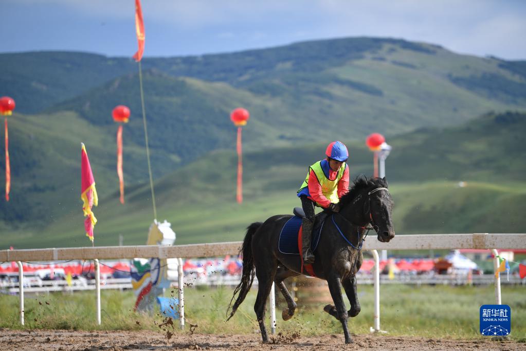 牧民在興安盟那達慕參加賽馬比賽(2020年8月9日攝)。新華社記者 貝赫 攝