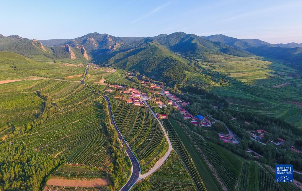 這是2021年8月30日拍攝的內(nèi)蒙古赤峰市喀喇沁旗馬鞍山村風光(無人機照片)。新華社記者 貝赫 攝