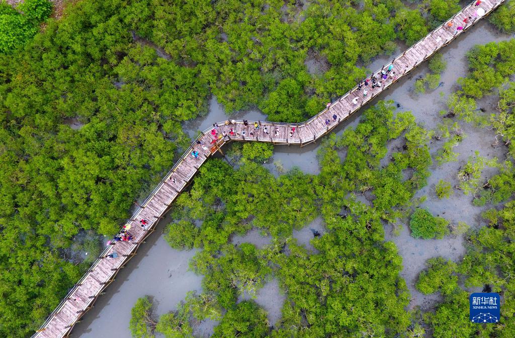 這是在廣西北海市金海灣紅樹(shù)林生態(tài)休閑區(qū)拍攝的紅樹(shù)林(2017年8月23日攝,無(wú)人機(jī)照片)。新華社記者 黃孝邦 攝