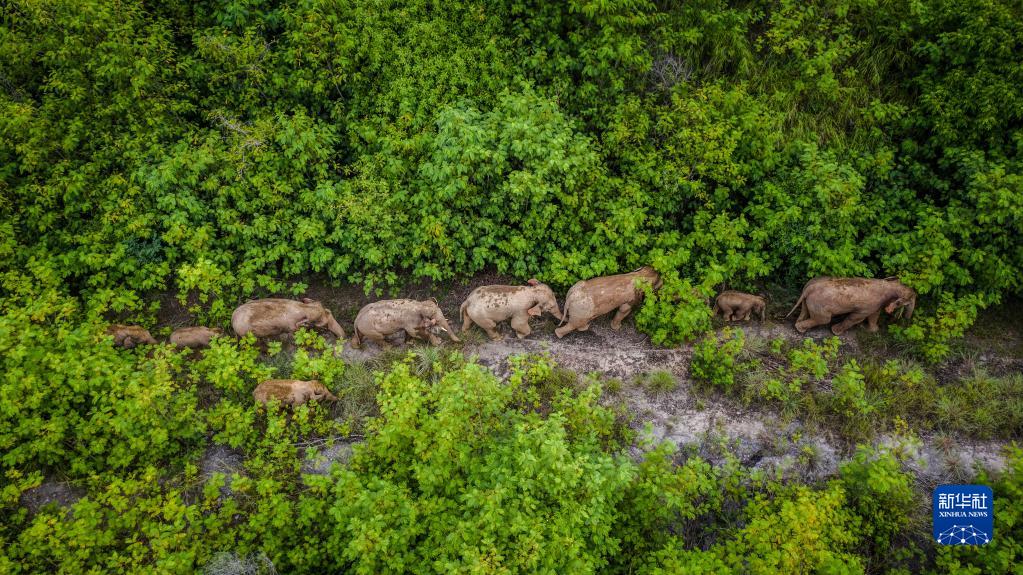 這是在云南省玉溪市元江縣境內(nèi)拍攝的象群(無(wú)人機(jī)照片,2021年8月9日攝)。新華社記者 胡超 攝