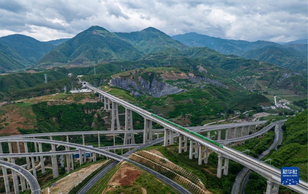 復(fù)興號(hào)列車通過(guò)中老鐵路元江特大橋(6月1日攝)。新華社記者 江文耀 攝