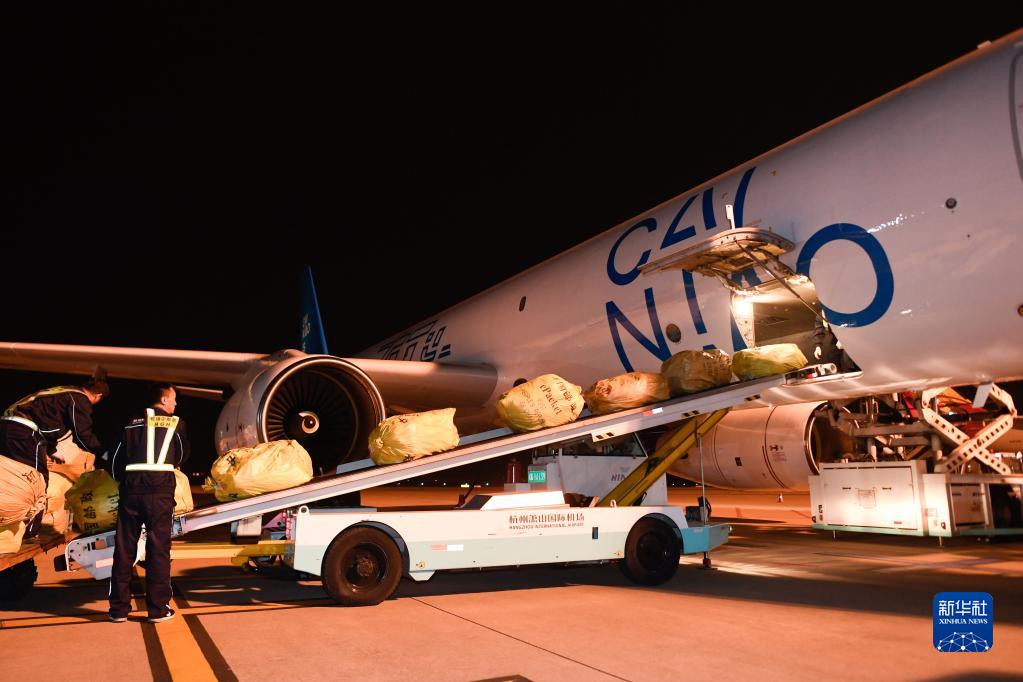 2019年10月30日凌晨,浙江杭州飛往俄羅斯首都莫斯科的首條直達(dá)電商貨運(yùn)航線“菜鳥號(hào)”從蕭山國(guó)際機(jī)場(chǎng)首航。新華社記者 黃宗治 攝