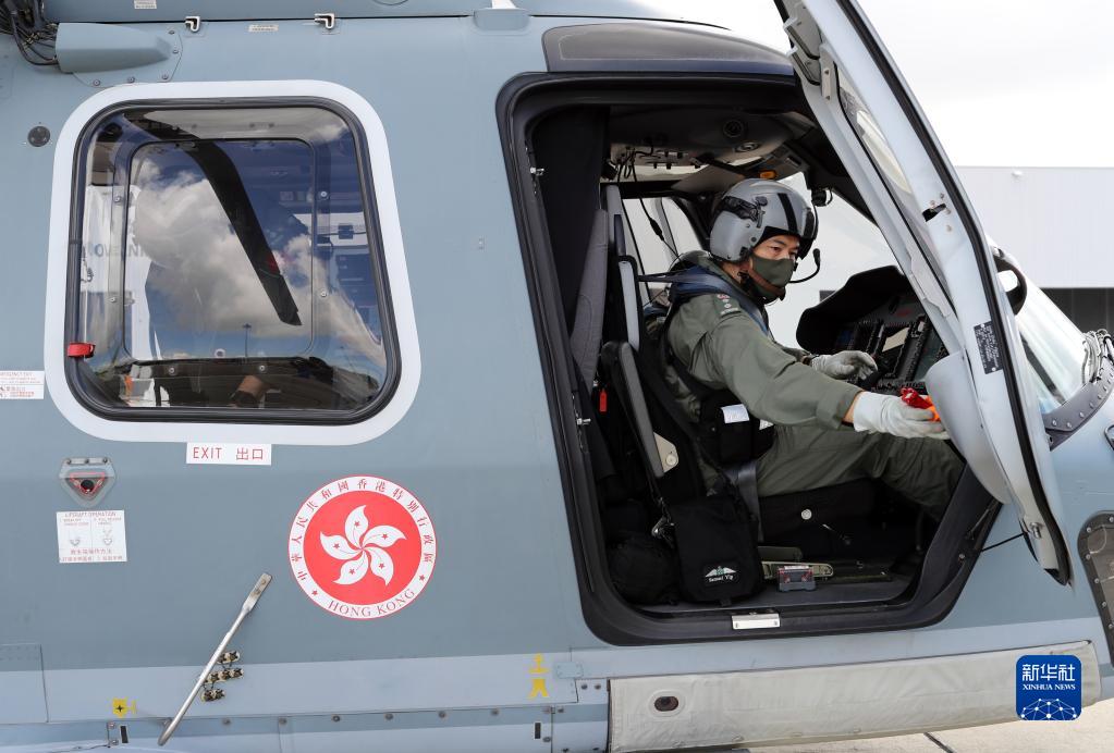香港特區(qū)政府飛行服務(wù)隊領(lǐng)航機(jī)長葉偉雄準(zhǔn)備訓(xùn)練(6月23日攝)。新華社記者 李鋼 攝