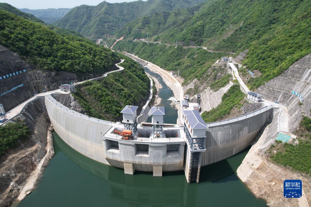 引漢濟渭工程三河口水利樞紐工程(2022年4月19日攝,無人機照片)。新華社記者 邵瑞 攝