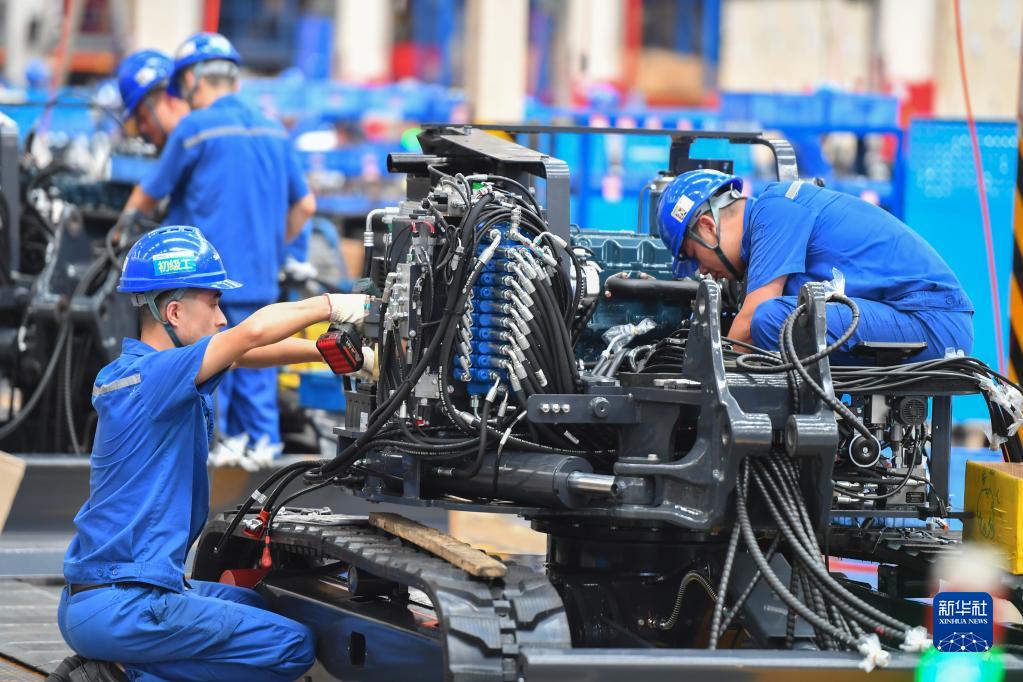 在位于長沙經(jīng)開區(qū)的一家智能裝備公司,工作人員在組裝機械裝備(2022年7月1日攝)。新華社記者 陳澤國 攝