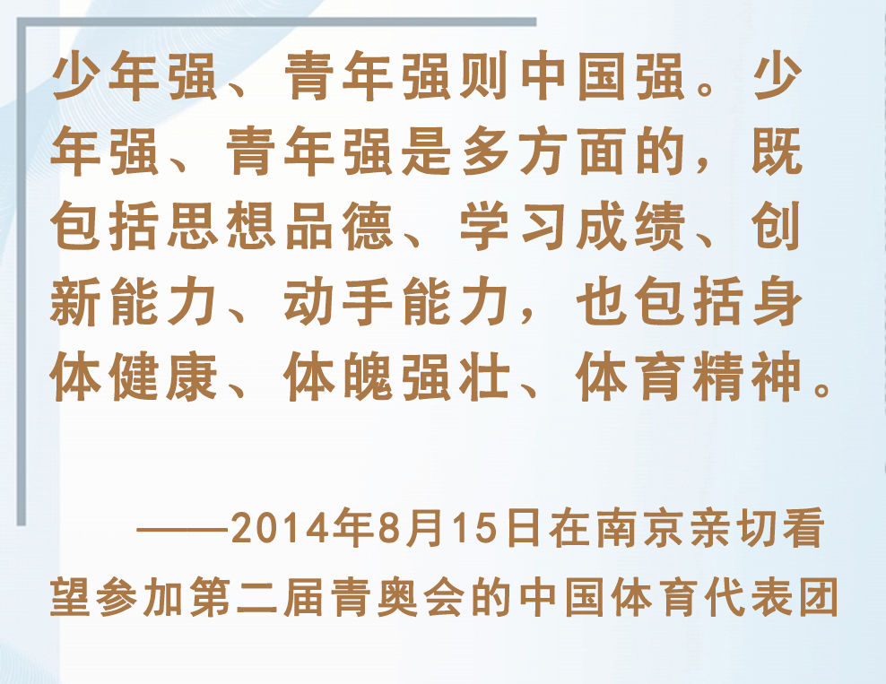 青少年是祖國的未來、民族的希望。強健的體魄是青少年成長成才的重要前提。對加強體育教育,增強青少年體質(zhì),習近平總書記念茲在茲。