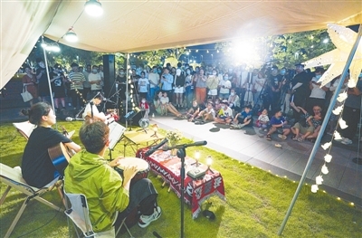 夜幕降臨,華燈初上,市區(qū)街頭巷尾開始熱鬧起來:夏季集市里,人群熙熙攘攘,交談聲、討價(jià)聲交織在一起;書店里,老人、年輕人、孩子靜坐閱讀;健身房里,跑步、練瑜伽,各有所愛;小廣場(chǎng),音樂愛好者現(xiàn)場(chǎng)開唱……
