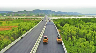 西淅高速張灣特大橋借助數(shù)字化力量進行瀝青攤鋪碾壓施工。魏鵬旭 攝